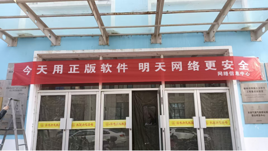 为扩大活动影响力、拓宽宣传覆盖面,活动前期专门设计了软件正版化主题宣传海报。在逸夫楼、1号教学楼、校餐厅、5号教学楼等室内区域通过展架形式循环展出;同时,在2号实验楼、逸夫楼及校园广告区等楼宇外张贴横幅和海报,多点位同步发力,营造出“人人关注正版软件、人人重视网络安全”的浓厚校园氛围。